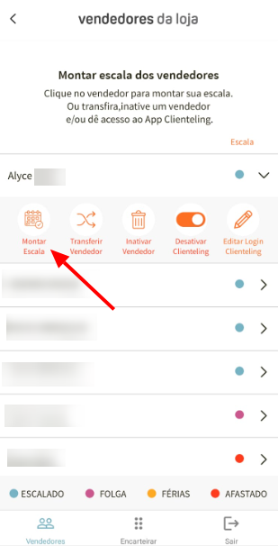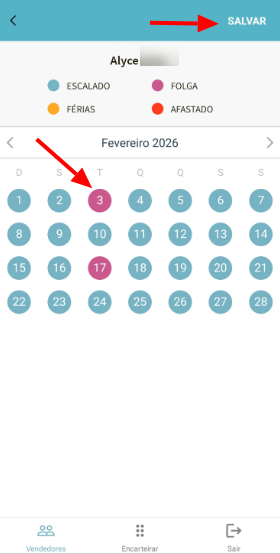 Acesse o APP Manager e, na aba “Vendedores”, selecione a loja e o colaborador desejado.